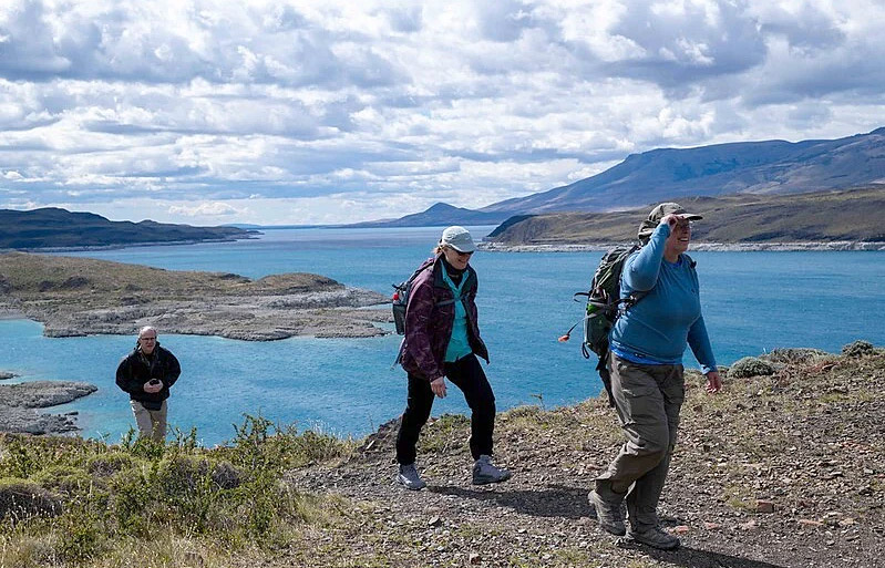 Discover the gentle, mostly flat Ancient Shores hike at Lake Sarmiento, where geological wonders meet Patagonian wildlife. Walk past striking folded rock formations, cross an isthmus connecting two lakes, and watch for guanacos and grebes. Visit a secluded bay with vivid waters and ancient thrombolites—living fossils shaped by time. Weather permitting, follow the 3.5 km Laguna Larga trail and savor lunch by the lakeshore for a truly immersive experience in Patagonia’s timeless beauty, blending science, wonder, and tranquility.